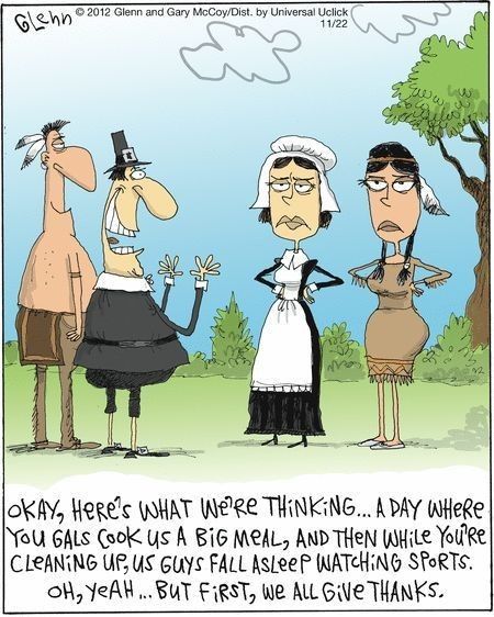 Satirizing the traditional Thanksgiving scenario, where male characters nonchalantly assign cooking and cleaning tasks to women while planning a sports-filled nap. It smartly critiques outdated gender roles and holiday clichés through humorously blunt dialogue.