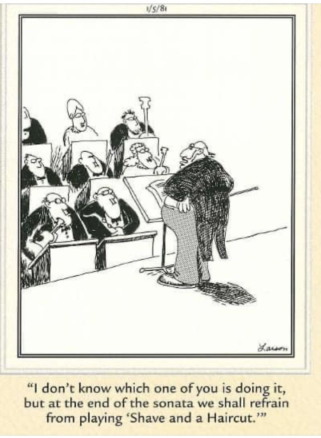 In the middle of a serious concert, someone sneaks in “Shave and a Haircut” — and the conductor has HAD IT. A brilliant jab at how even high society has trouble resisting dumb jokes.