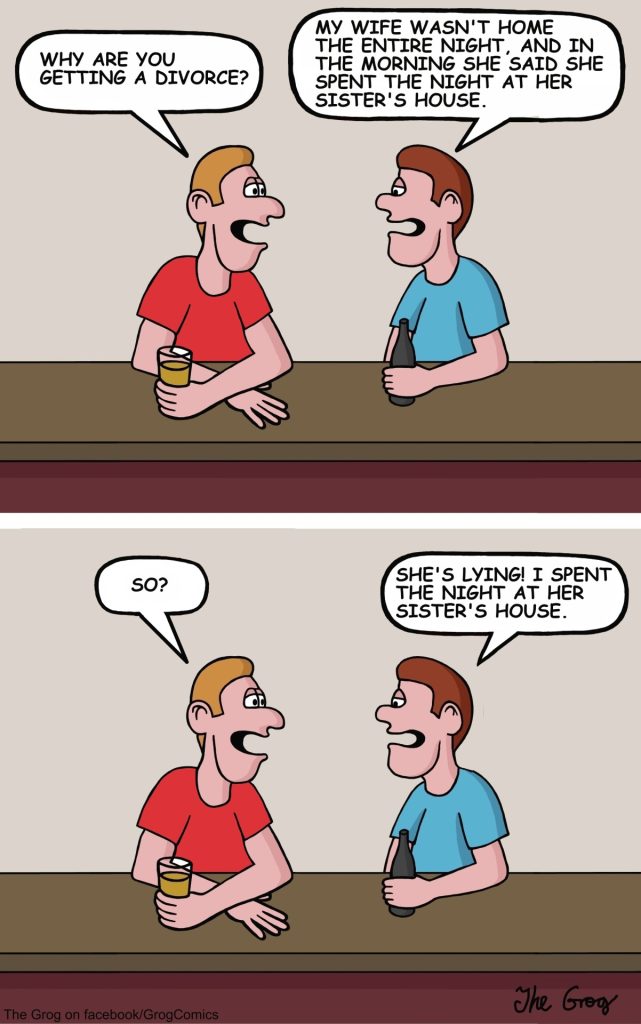 Cheating scandals meet family drama in this painfully funny cartoon. The final line completely flips the conversation on its head, delivering a perfect mix of betrayal, awkwardness, and humor.